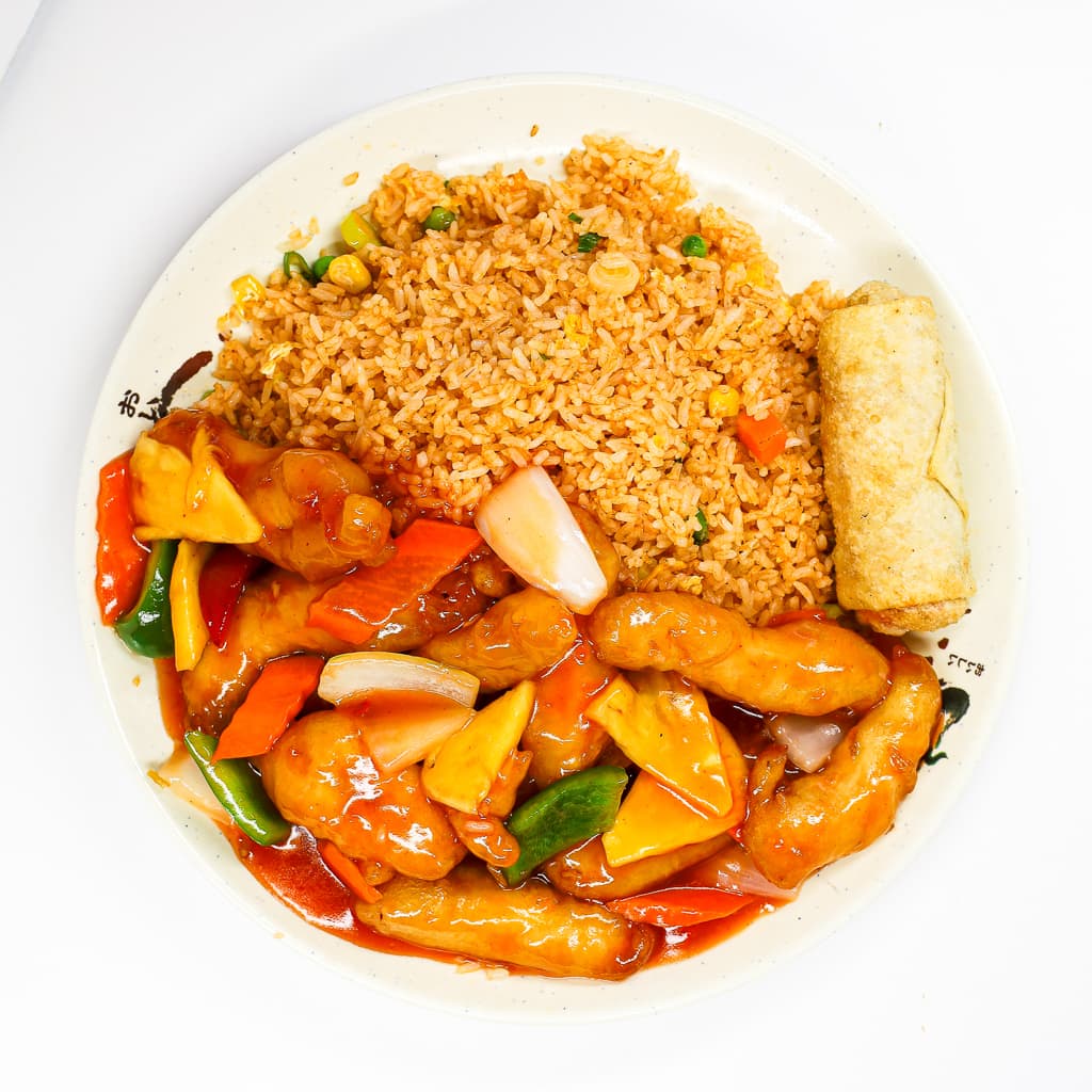 All luncheon specials are served w/ steamed Jasmine rice or plain fried rice and your choice of Chinese Eggroll, Chicken Wings, or Nime Chow. Choice of meat fried rice will be an extra charge. (No Substitutions Allowed)